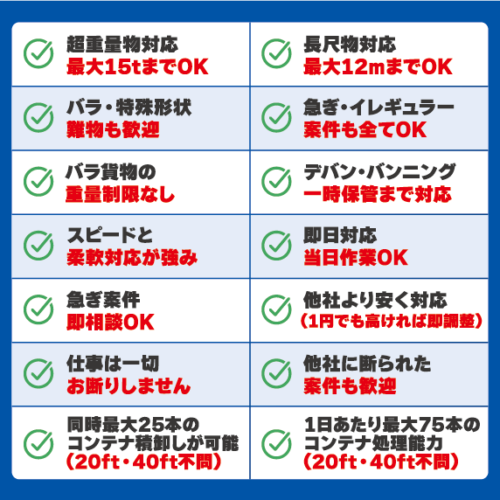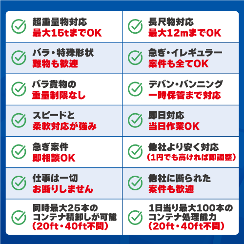 ✅1日あたり最大100本のコンテナ処理能力 (20ft・40ft不問)